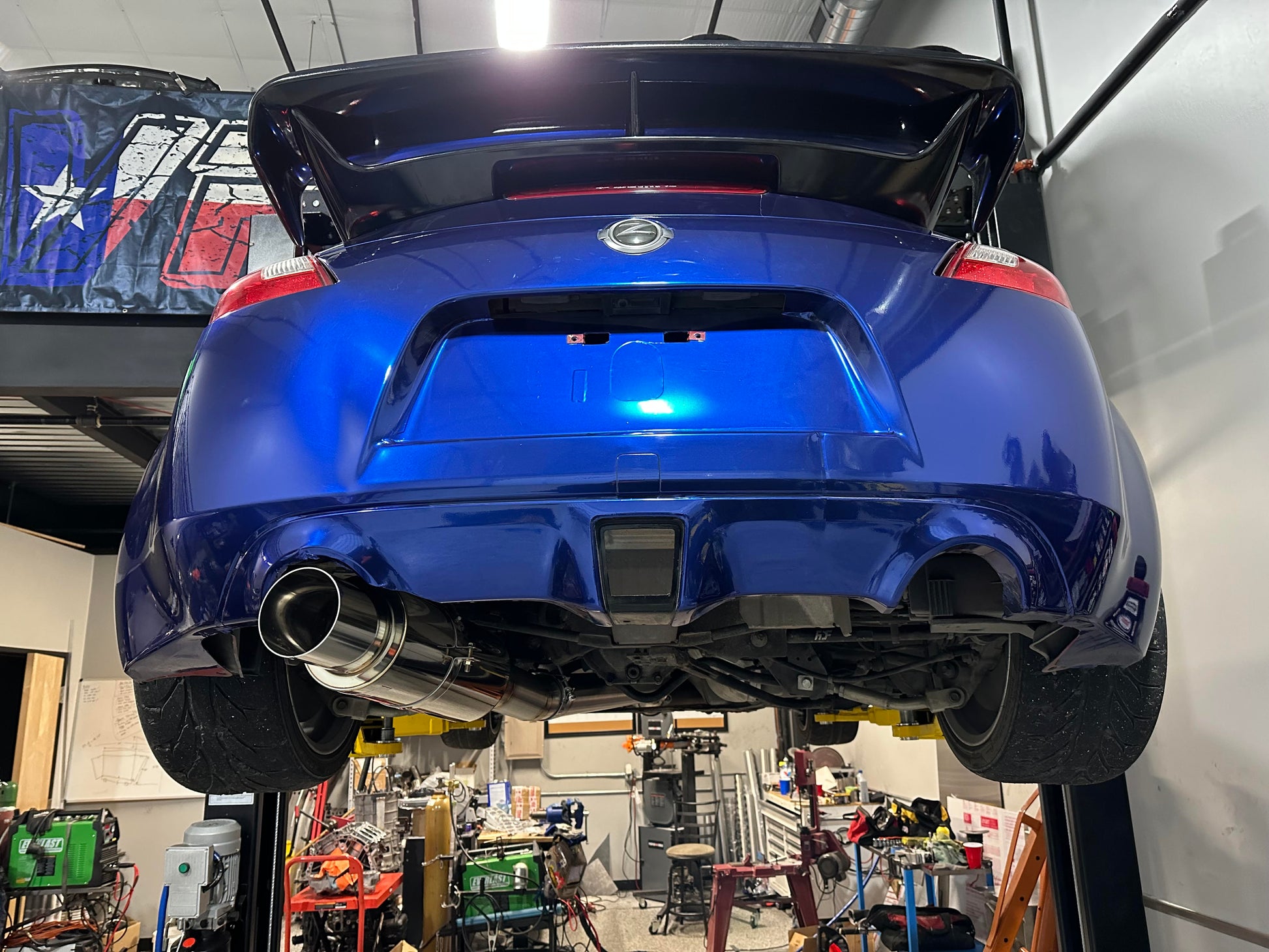 Single exits are extremely popular on the 370z. The vast majority are all 3in for tube size. So why 3.5in? Because we have consistently seen a small torque jump on the entire dyno run when tuning. With the price being comparable to all quality single exits, our single exit is one of the best on the market in terms of quality, sound and performance. There is almost a completely different sound to the VQ with this exhaust. This system is ideal for opening up the exhaust on both NA and turbo applications. The exhaust comes standard as a full 3.5in system but has the option to add a reducer and 3.0in flange for proper mounting and install. The option to add a durable high quality Stainless Bros resonator is also available with no change to build time.