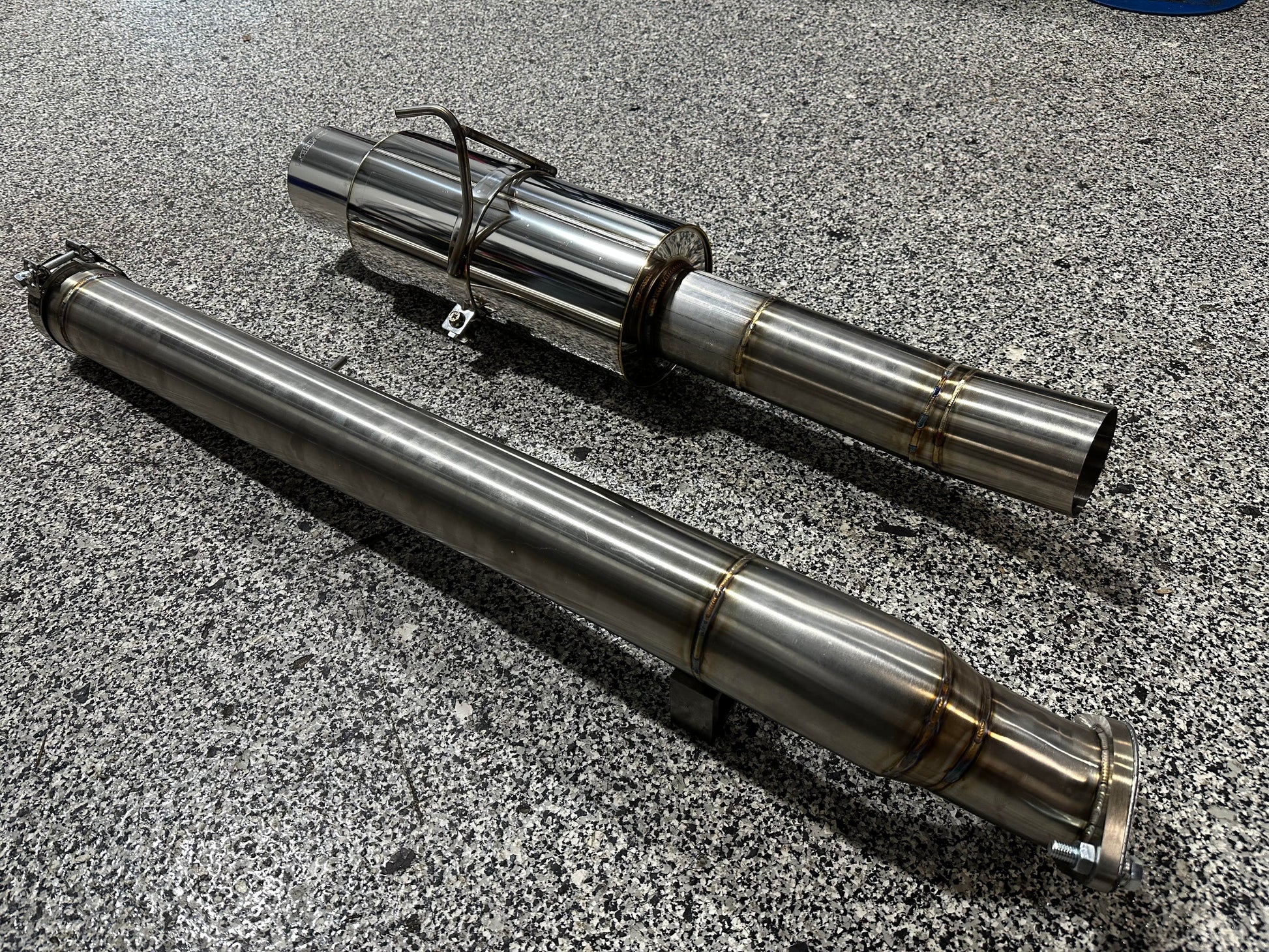 We exclusively use stainless bros materials and TIG weld this system to perfection. Included is an Apexi N1 style muffler and a slip fit in the middle to make for an easy install. This exhaust is will fit all off the shelf 3in Y-Pipes if the 3.0in flange option is selected.
